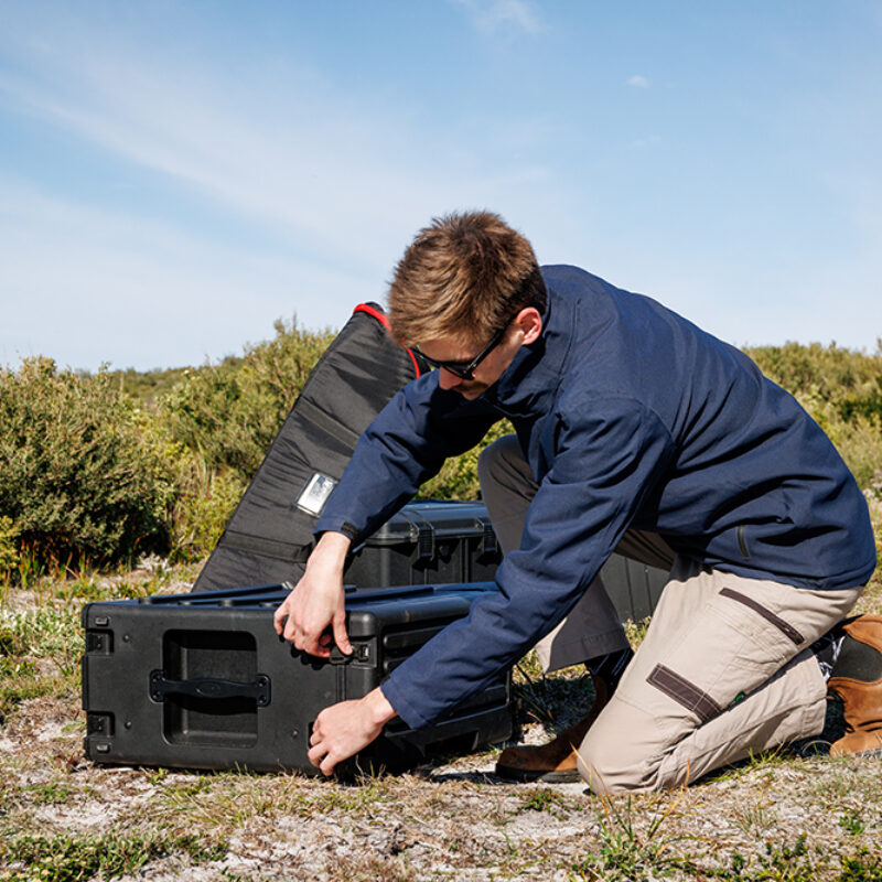 Modular design: The system is stored in three rugged cases, suitable for commercial air travel.